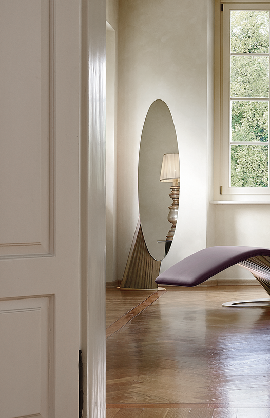 Like the moonlight reflected on the water, our mirror has been designed to reflect any image on its elegant elongated oval surface. The characteristic wooden strips are perfectly arranged in the shape of a wave that is both functional and decorative.