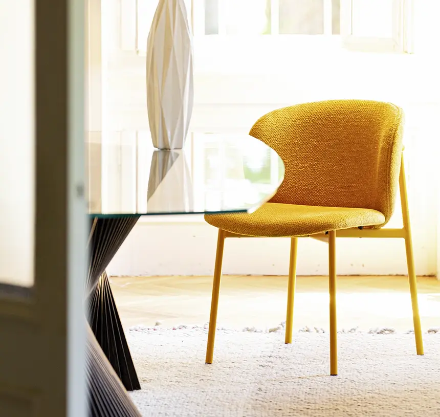 Poetic elegance and comfortable ergonomics are the characteristics which define Abbraccio’s strong personality. In the name of aesthetic research and functionality and the combination with refined upholstery enhance the chairs relationship with the context of any space.