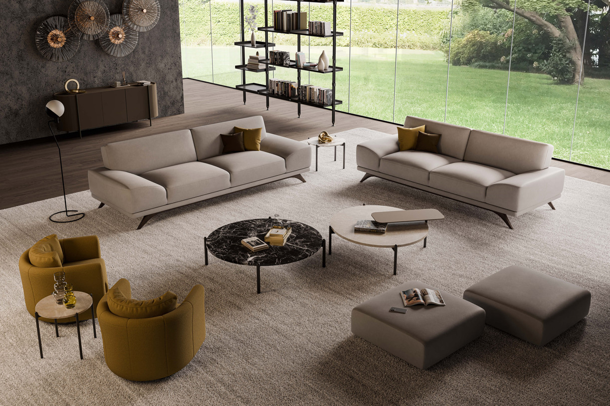 Sorriso is an extremely modern product. It is a light, airy sofa, suspended on aluminium feet. We paid careful attention to the detailing on the armrest, which extends to behind the backrest. It is a sort of modern capitonné, made with a seam that divides, embellishes and holds the armrest in place. Sorriso is a versatile product which appeals to a very wide audience.